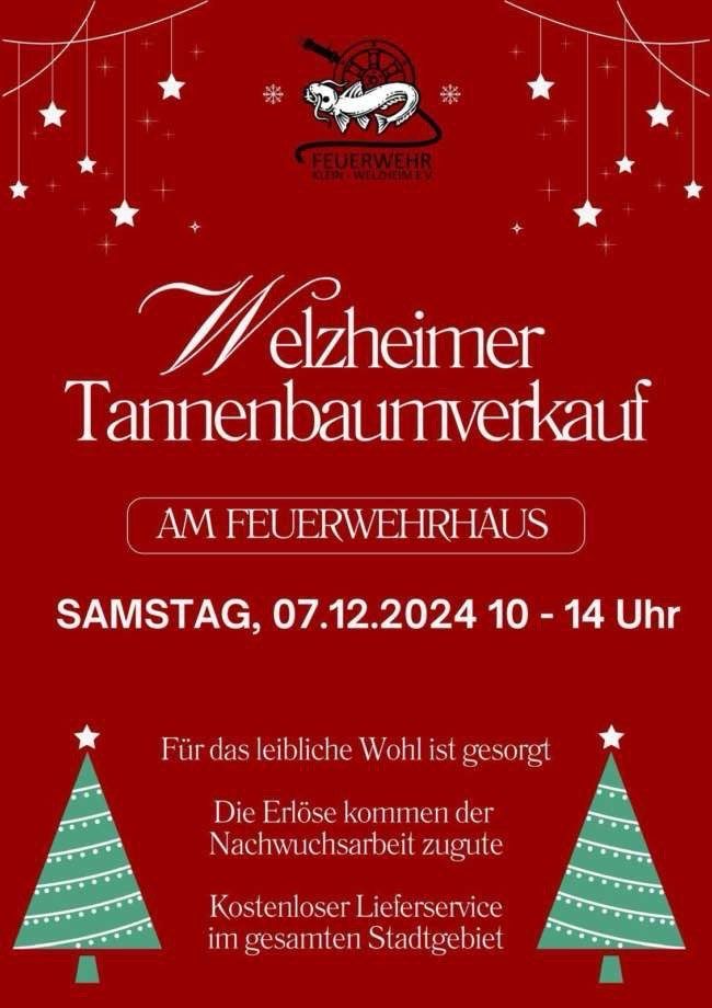 von 10 bis 16 Uhr ihren Weihnachtsbaumverkauf am Feuerwehrhaus in Klein-Welzheim.