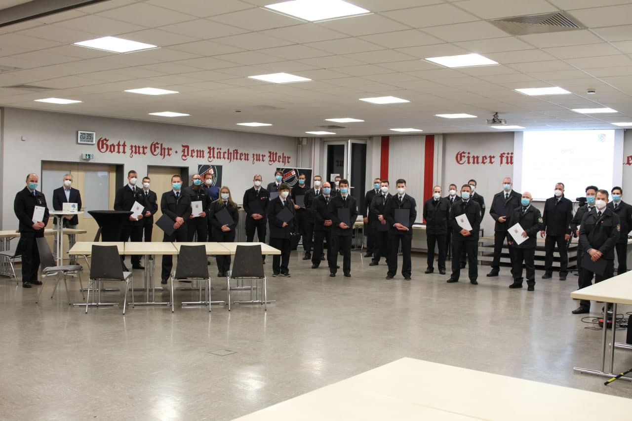 Vom stellvertretenden Stadtbrandinspektor Thorsten Ott konnten 18 Einsatzkräfte aufgrund erfolgreich besuchter Lehrgänge und Seminare in einen höheren Dienstgrad befördert werden.