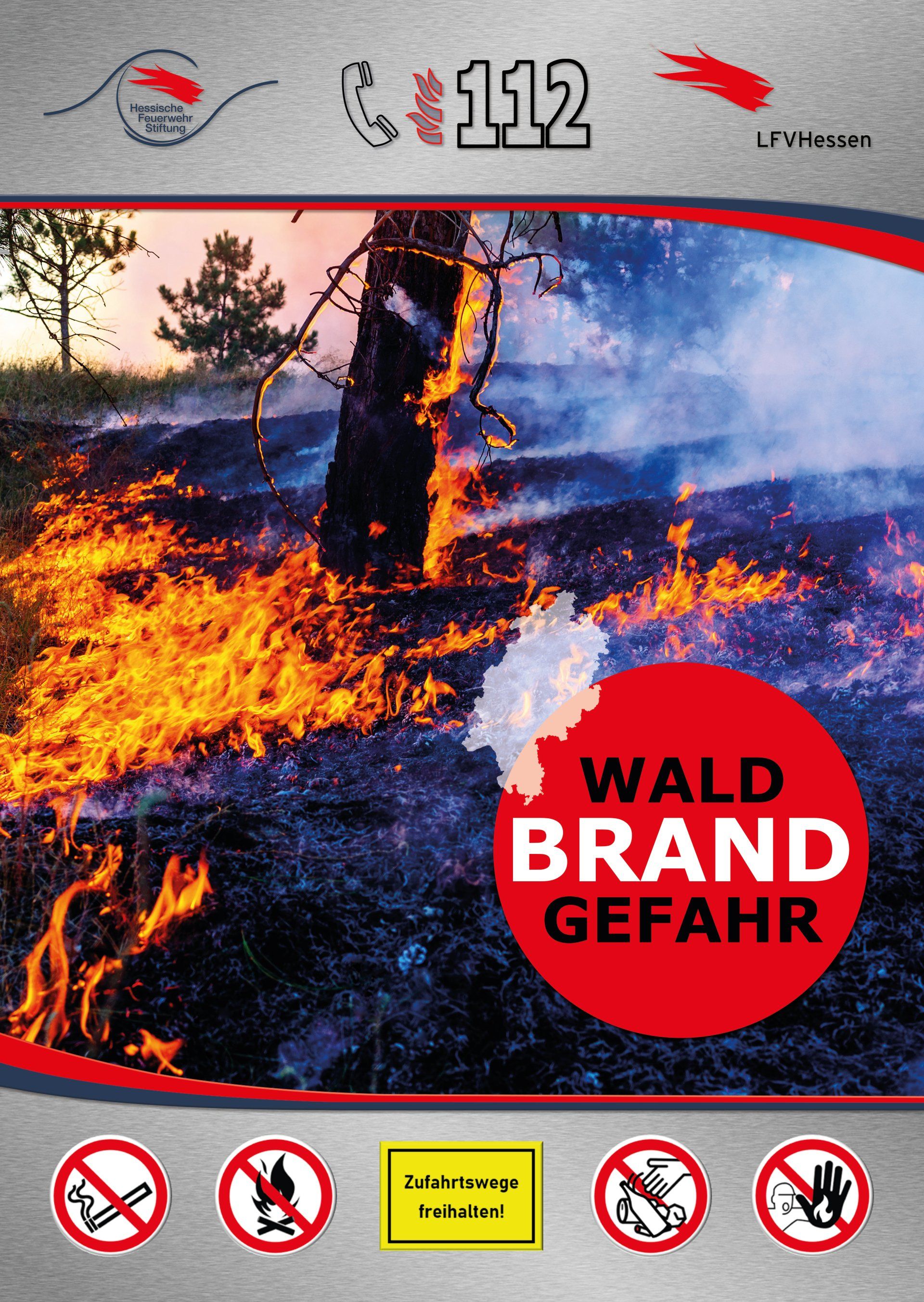 Die diesjährige Plakataktion der Hessischen Feuerwehrstiftung sensibilisiert und informiert daher zum Thema „Waldbrandgefahr“ und stellt in diesem Zusammenhang die wichtigsten Verhaltensregeln bildhaft vor.