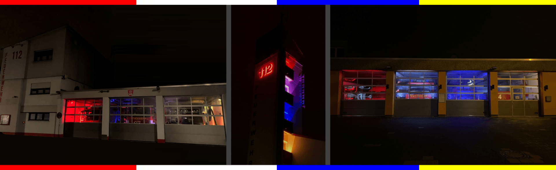 Ab Samstagabend werden die drei Feuerwehrhäuser in den bunten Farben der Seligenstädter Fastnacht beleuchtet.